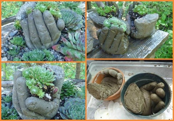 15. Concrete Garden Hands – Make unique planters by molding concrete into hand shapes.