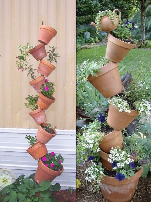 3. Vertical Garden with Stunning Pots – Save space by using stacked pots or repurposed wooden pallets for a vertical garden.