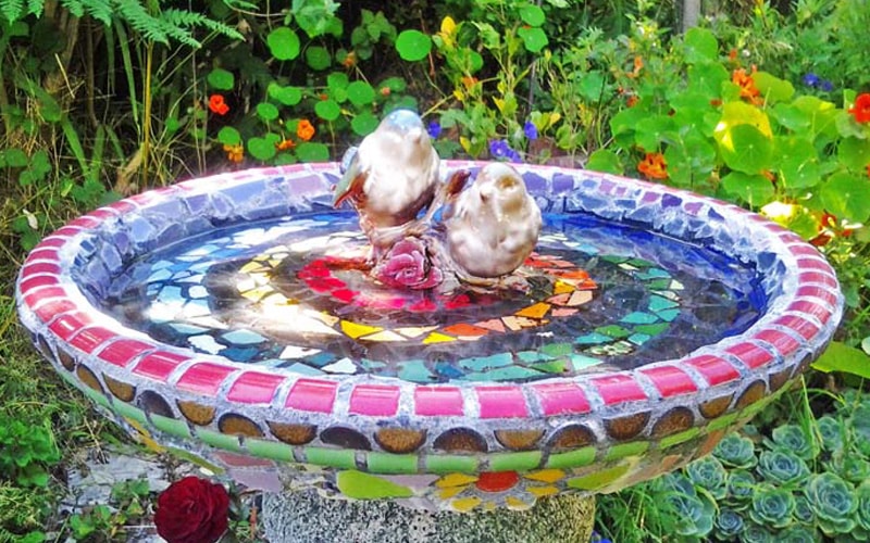 12. Colorful Birdbath Design