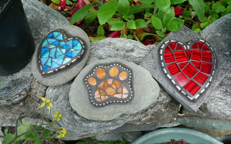 Craft detailed mosaic portraits on rocks to personalize your garden with artistic flair.
