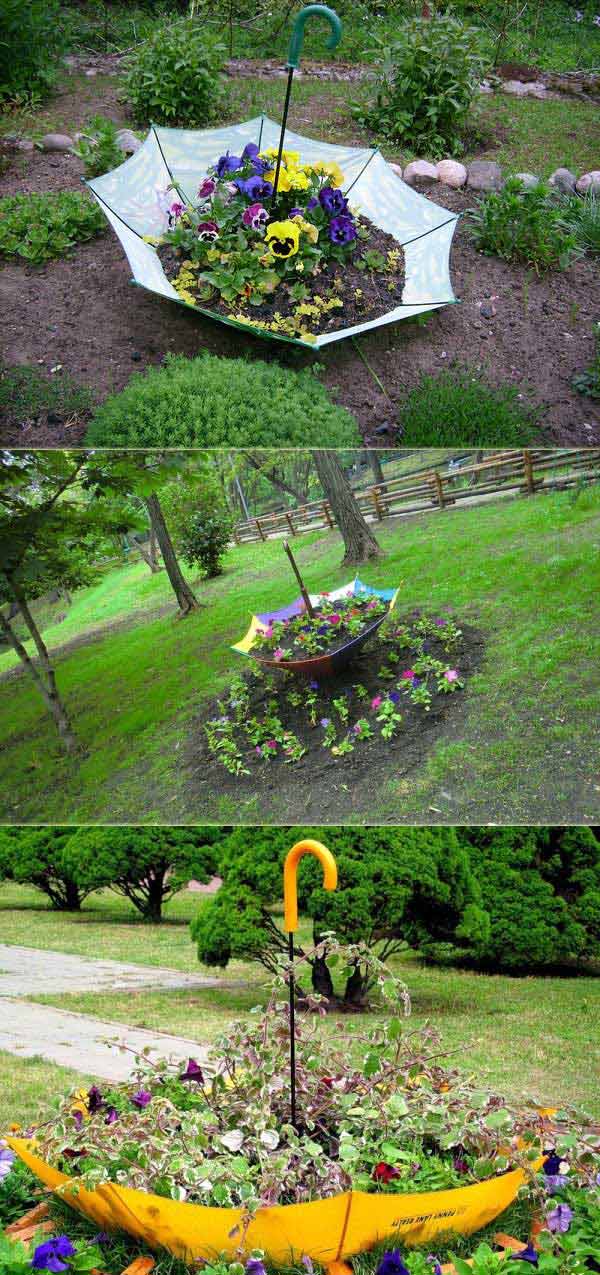 Turn an old, inverted umbrella into a unique and eye-catching planter! Simply: