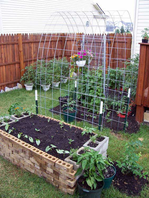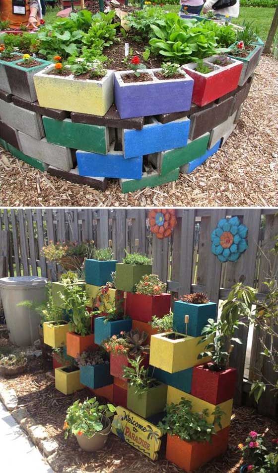 Brighten up your yard with painted cinder blocks stacked to create a bold garden bed.