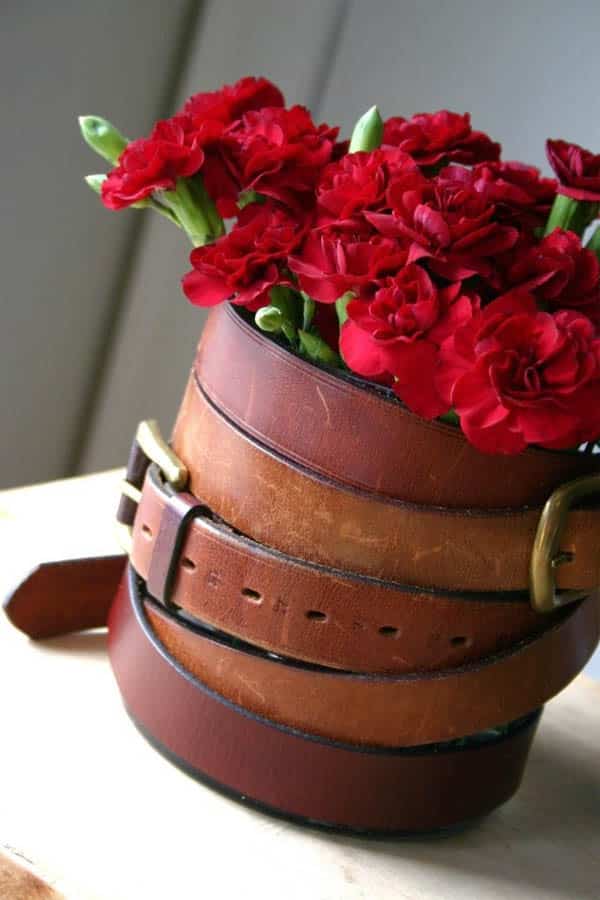 Wrap leather or colorful fabric belts around a plain terracotta pot to give it a chic, designer look. Secure the belts in place for added texture and flair.