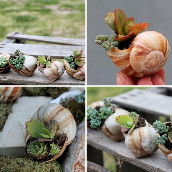 Use large seashells or a collection of smaller ones to create a mini coastal garden. Perfect for succulents or air plants, these tiny planters are ideal for tabletops or bathroom decor.
