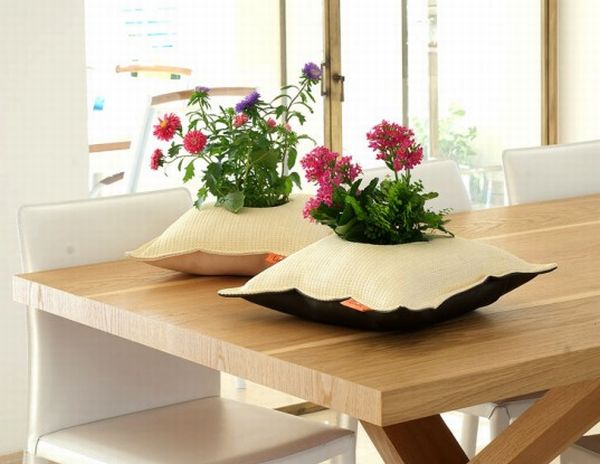 Use waterproof outdoor pillows or cushion covers filled with soil to plant flowers. These soft containers are great for creating a cozy, laid-back garden feel.