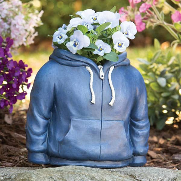 Fun Idea: Sit the hoodie planter on a bench with sunglasses for a playful garden guest.