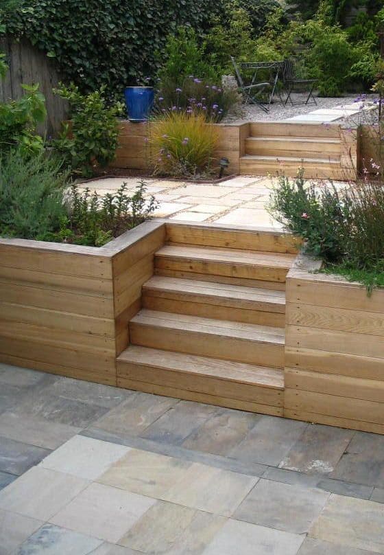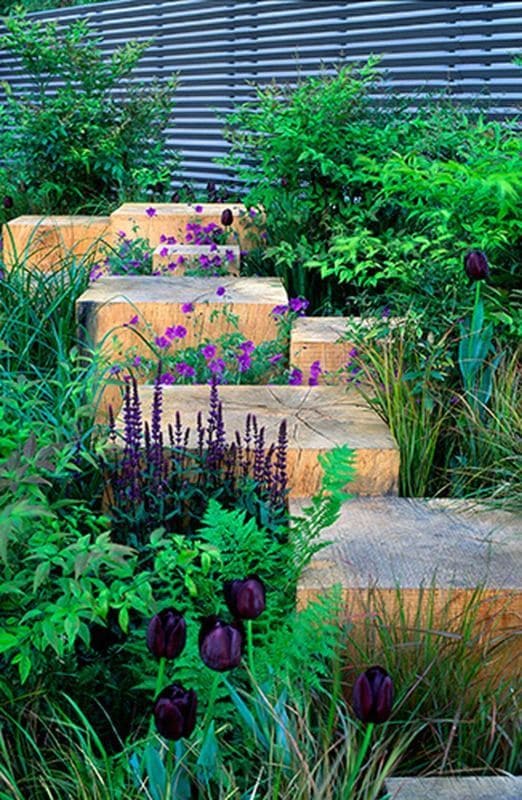 Timeless and versatile, wooden garden stairs blend naturally with both rustic and modern gardens.