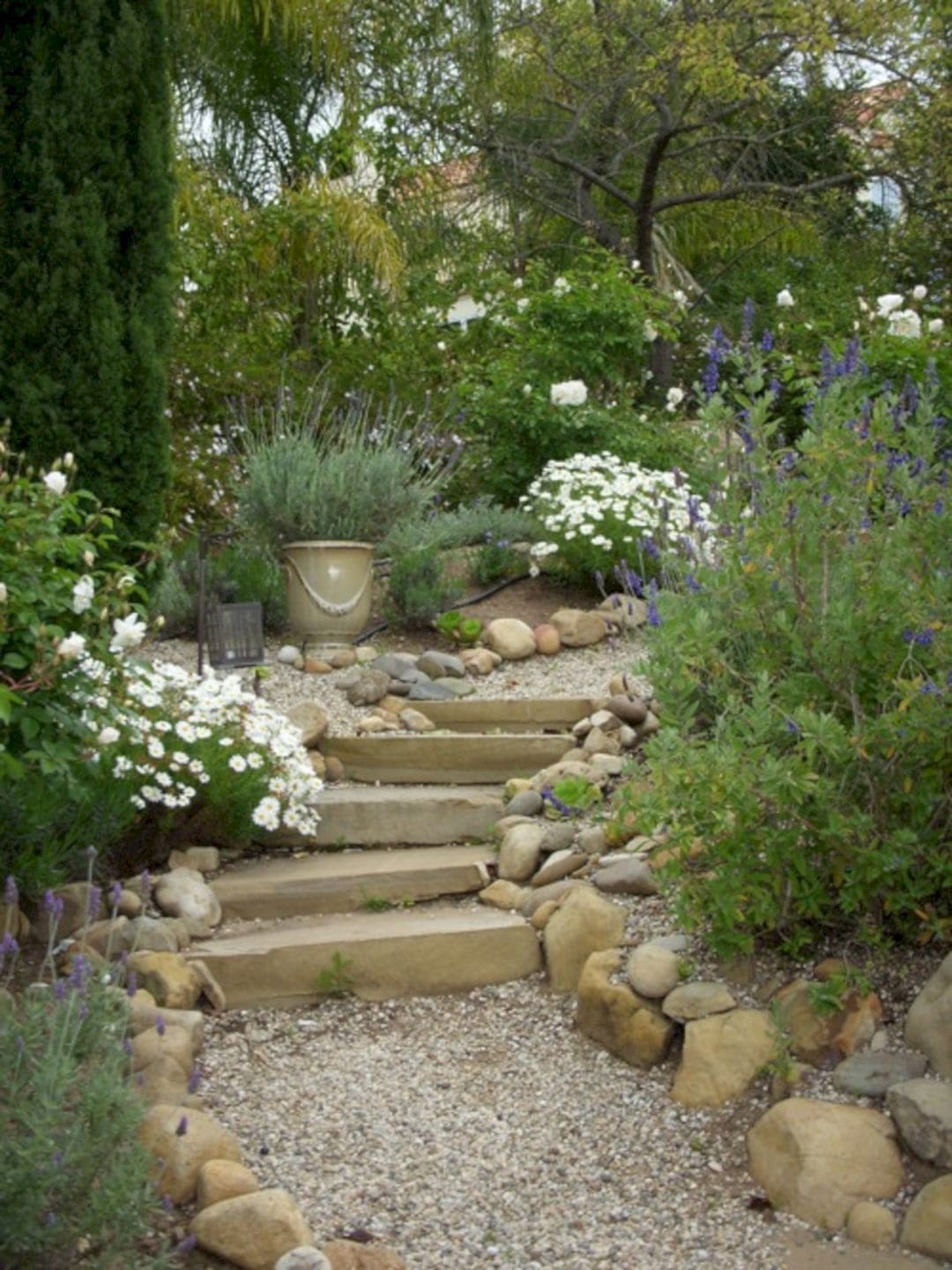 Create a romantic, cottage-style stairway by flanking stone steps with fragrant lavender on either side.