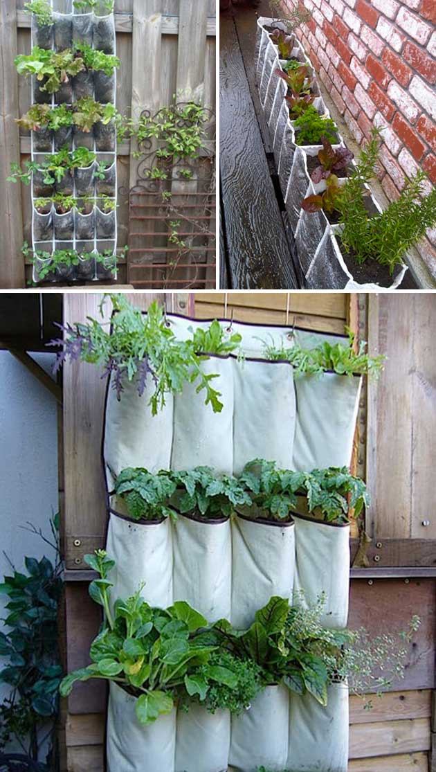 Fill the pockets of a fabric shoe organizer with soil and herbs or flowers, then hang it on a fence or wall for a creative vertical garden.