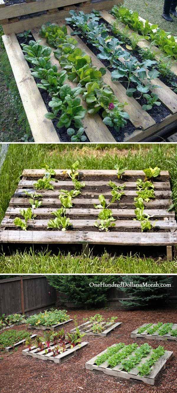 18. Use a Pallet + Garden Fabric for an Instant Planter