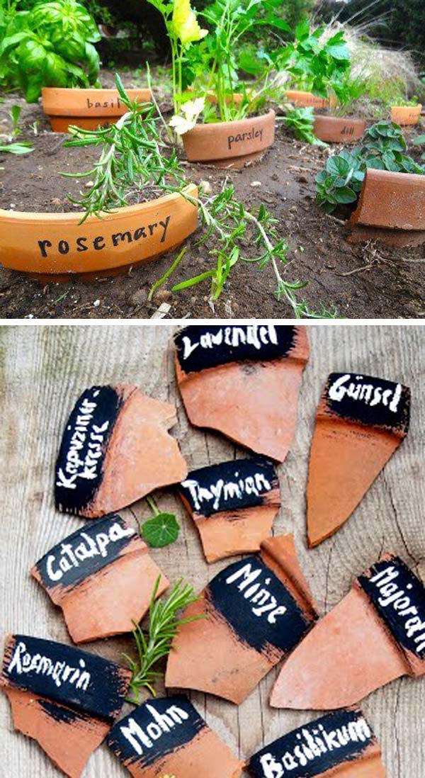 23. Make plant markers out of broken pots