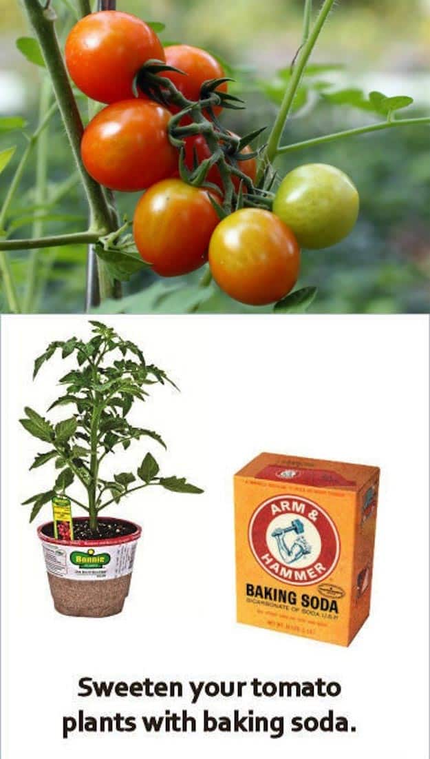 Sprinkle a small amount of baking soda around tomato plants to lower soil acidity, which can reduce tartness and enhance natural sweetness.
