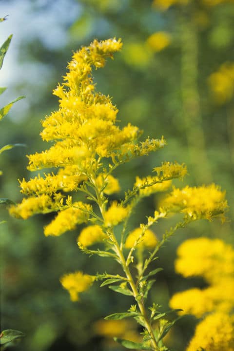 Goldenrod is an iconic late-summer to fall bloomer known for its golden yellow flower clusters.