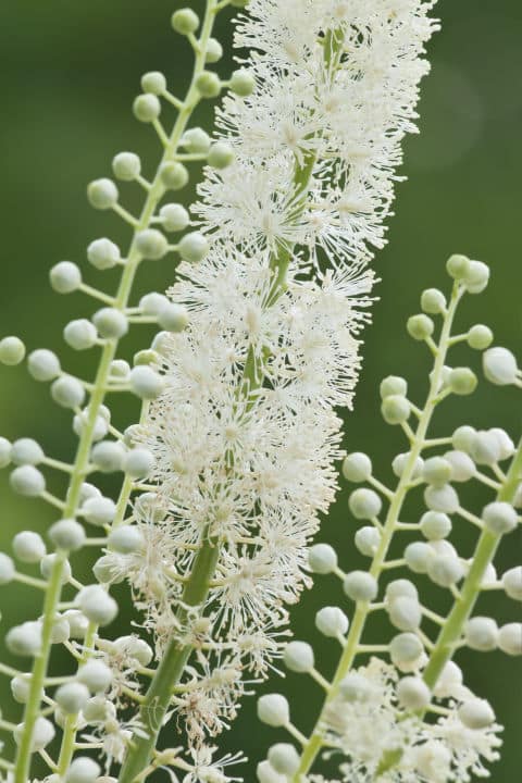 Also known as Black Cohosh, this tall perennial produces graceful white spikes of flowers in early to mid-fall.