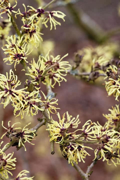 This shrub blooms in late fall and winter, producing fragrant, spiky yellow flowers.