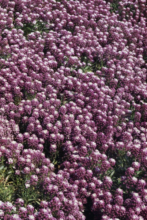 This low-growing flower forms a carpet of tiny blooms in shades of white, purple, and pink that release a honey-like fragrance.