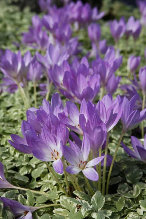 This fall-blooming bulb produces vibrant purple, pink, or white flowers that resemble spring crocuses.