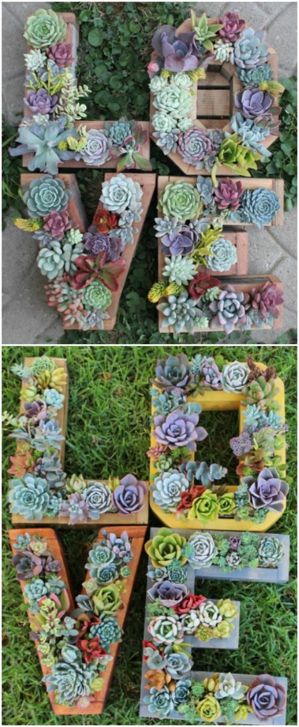 Use wooden or metal letters as planters for succulents. These make great personalized gifts or home decor pieces.