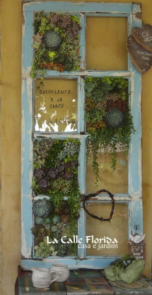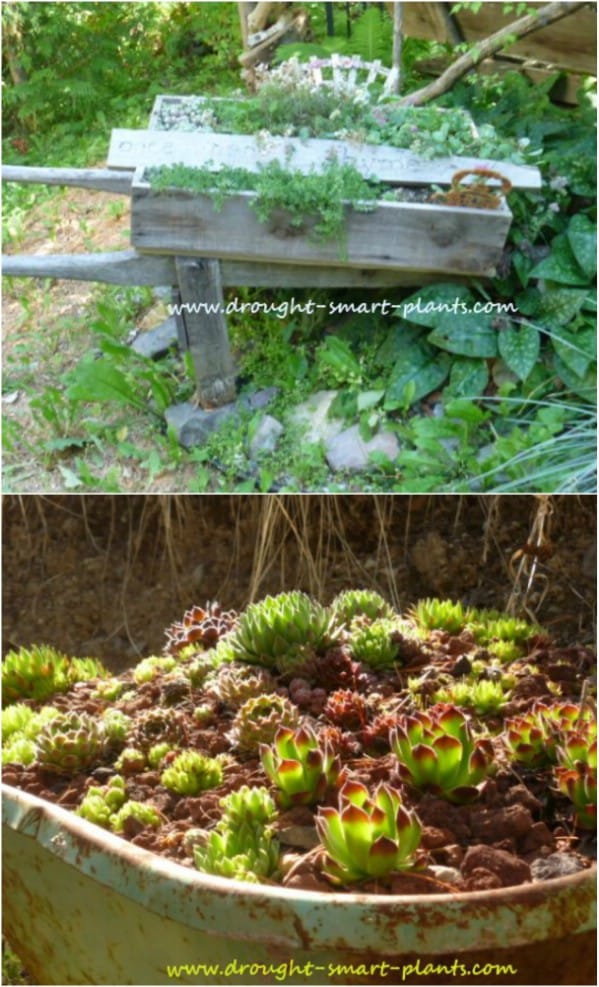 Turn an old, rusty wheelbarrow into a portable succulent garden. This works especially well for small yards, as you can move it around for optimal sunlight exposure.