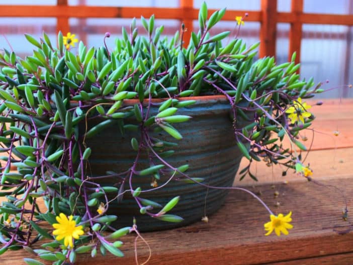 This popular trailing succulent is known for its unique, pea-like leaves that resemble a beaded necklace.