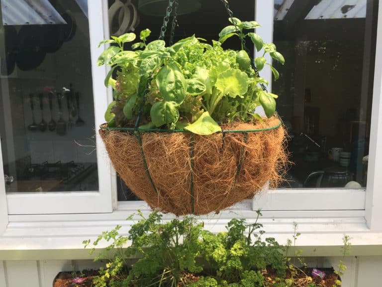 Leafy greens may not be the first thing that comes to mind for hanging baskets, but they’re surprisingly well-suited—especially cut-and-come-again salad mixes.