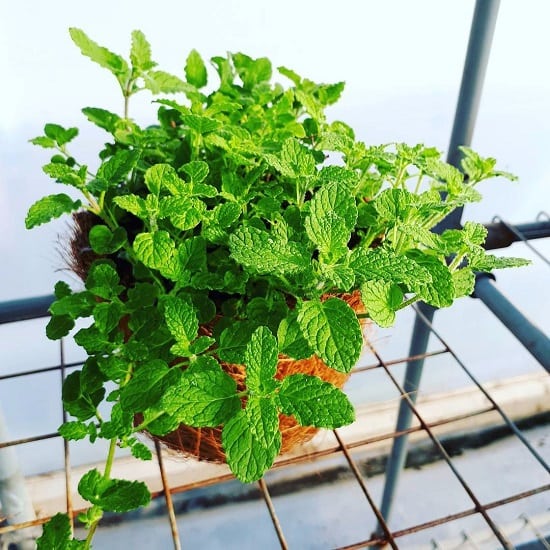 Mint is a fragrant, hardy herb that grows aggressively—making it perfect for a contained hanging basket where it won’t take over the garden.