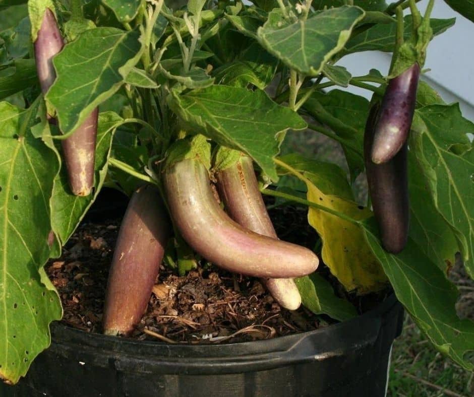 Eggplants are warm-weather lovers and grow beautifully in pots. They need consistent heat, full sun, and well-drained soil to thrive. With a variety of sizes and colors available, they’re both ornamental and edible.