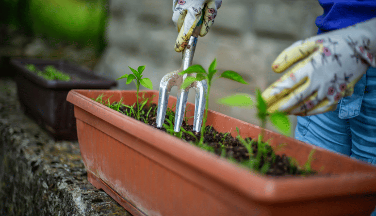 • Loosen compacted soil with a garden fork to improve aeration and water absorption.