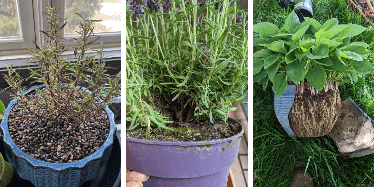 Hostas die back naturally in winter, and container-grown ones need trimming to prevent pests from overwintering in dead foliage.