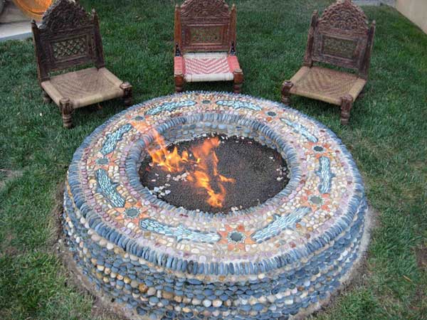 Take your fire pit area to the next level by creating a mosaic pattern around the fire ring or on the ground surrounding it. Use heat-resistant stone or tile and earth tones for a natural, cozy feel.