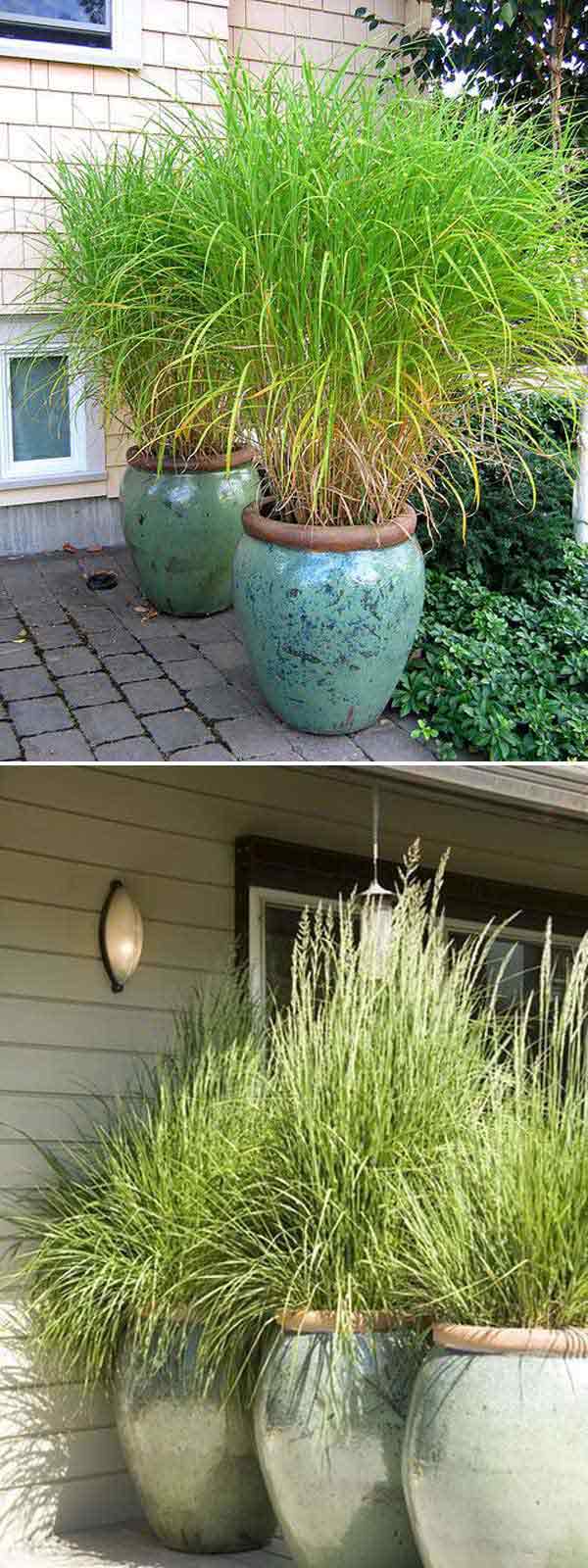 5. Moveable Privacy with Tall Ornamental Grasses in Pots