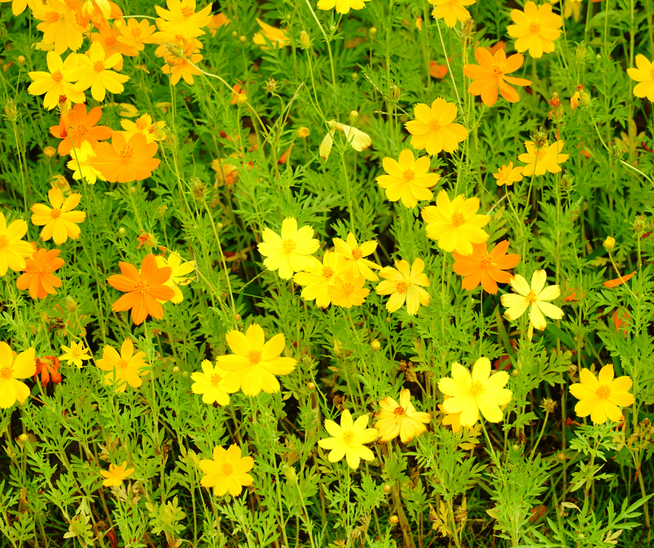 Yellow varieties like Cosmos sulphureus are especially striking and grow tall with abundant blooms that sway in the breeze.