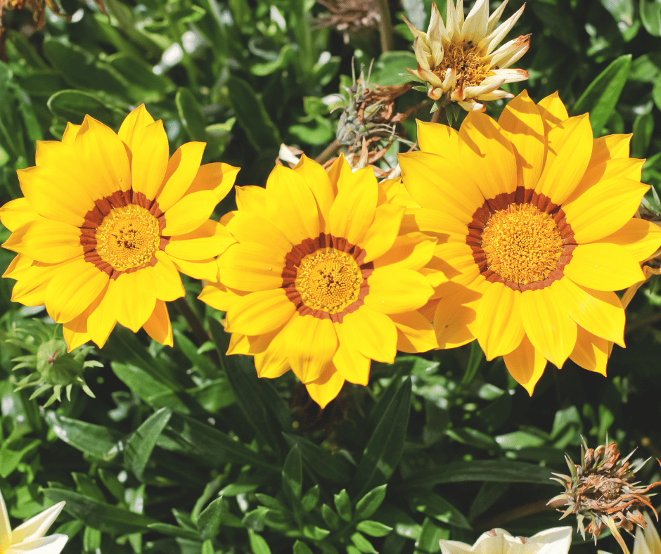 Known as “Treasure Flower,” gazania boasts daisy-like blooms that open in sunlight. Yellow varieties shine in dry, sandy soil and perform well in containers.