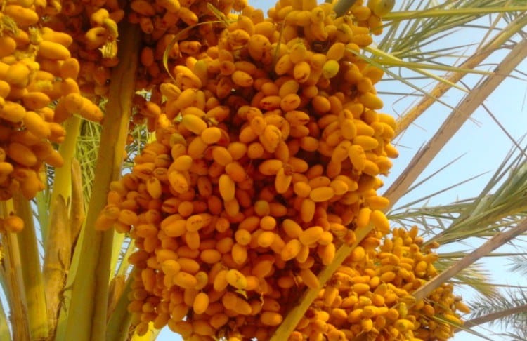 14. Dates Grow in Towering Clusters on Palm Trees