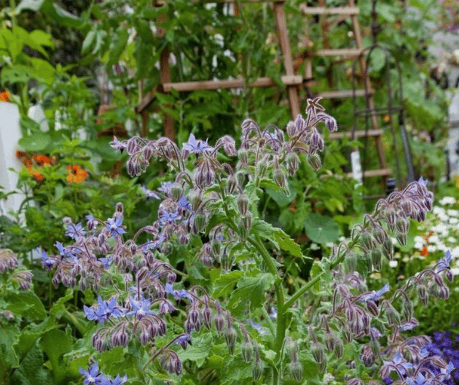 Borage acts as a natural repellent for tomato hornworms while attracting beneficial pollinators.