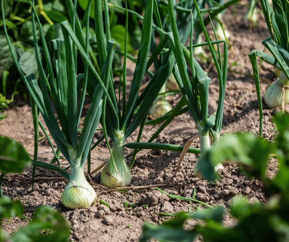 Onions are excellent for deterring aphids and boosting soil nutrients without competing for space or airflow.
