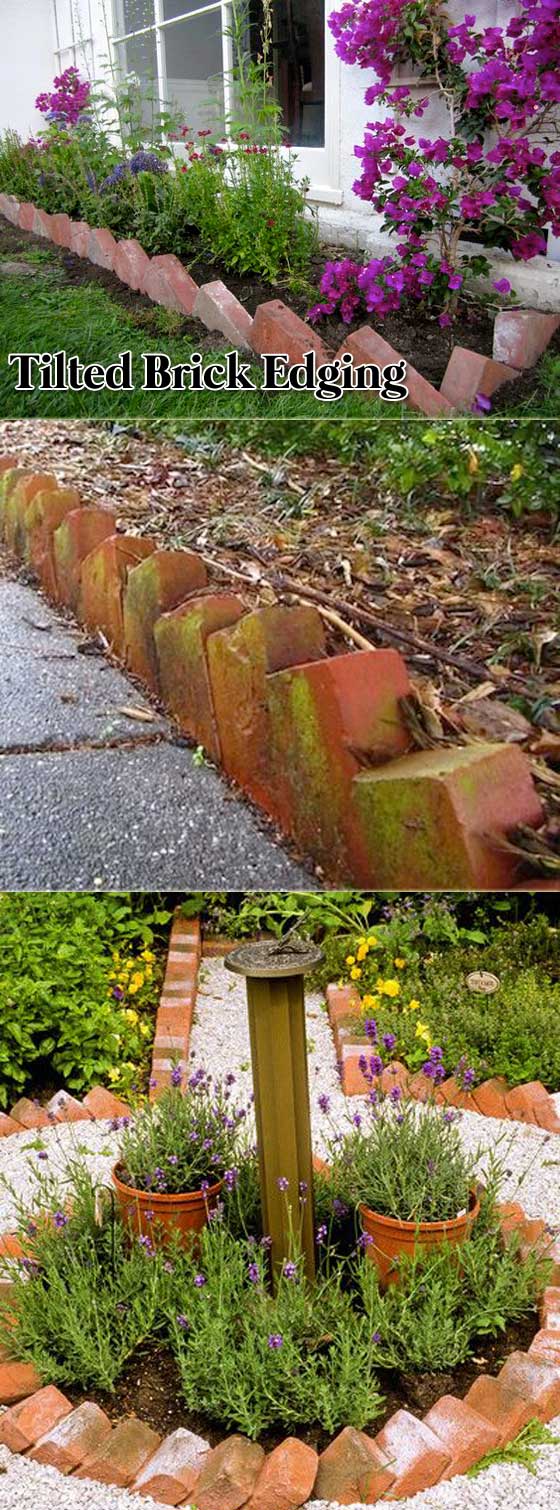 4. Tilted Brick Edging for a Unique Touch