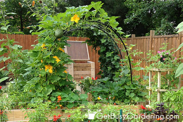A stunning feature for any garden, a sturdy arch supports vining squash while creating an attractive shaded walkway.