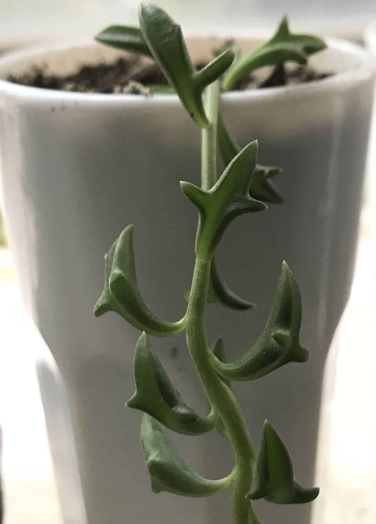 The result is a visually fascinating vine with rounded leaves that grow along a trailing stem, with each individual leaf looking like a tiny dolphin complete with flippers.