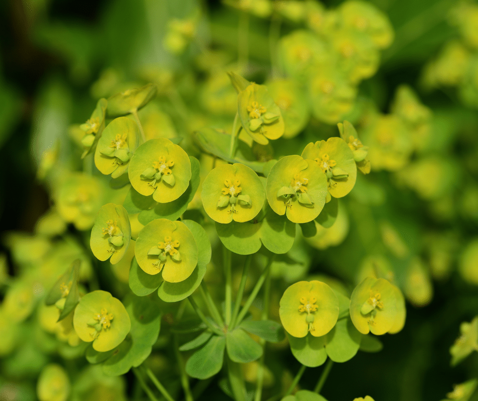 Euphorbia species like ‘Diamond Frost’ or ‘Donkey Tail Spurge’ are resilient perennials that handle hot, dry conditions without fuss. Their milky sap deters most pests, and their intricate flowers and leaves add texture.