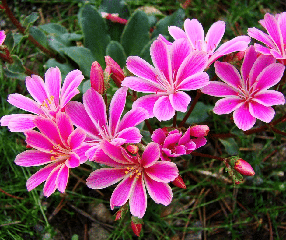 Lewisia is a succulent perennial known for its rosette of evergreen leaves and stunning blooms in shades of pink, orange, and white.
