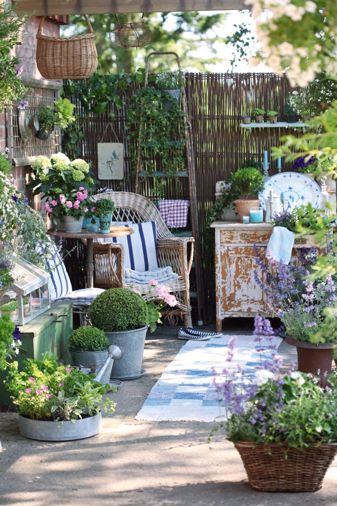 Creating a shabby chic outdoor retreat doesn’t require a large budget or professional landscaping skills.