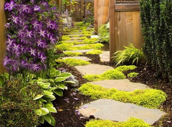 Here are some of the best low-growing, walkable, and visually appealing plants to grow between or beside your garden pathways: