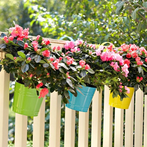 Hang terracotta or plastic pots from sturdy hooks on walls, railings, pergolas, or balcony ceilings. This method takes advantage of vertical space and frees up floor area.