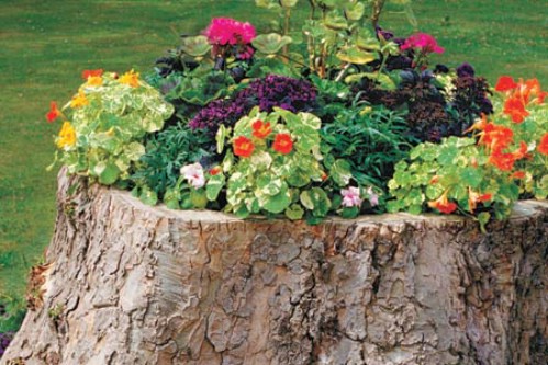 If you have an old tree stump in your yard, turn it into a natural planter by hollowing it out and filling it with soil. It makes for a rustic focal point in any outdoor area.