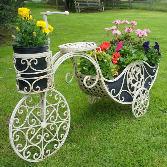 ✔ Repurpose Old Items: Use old bicycles, tin buckets, wooden crates, or wheelbarrows as charming planters.