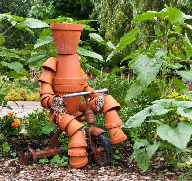 ✔ Terra-Cotta Man: Create a garden gnome-like figure using stacked flower pots and paint a fun face on it!