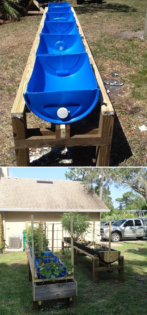 If you have access to food-grade 55-gallon juice drums, you can cut them lengthwise to create deep, curved raised planters.