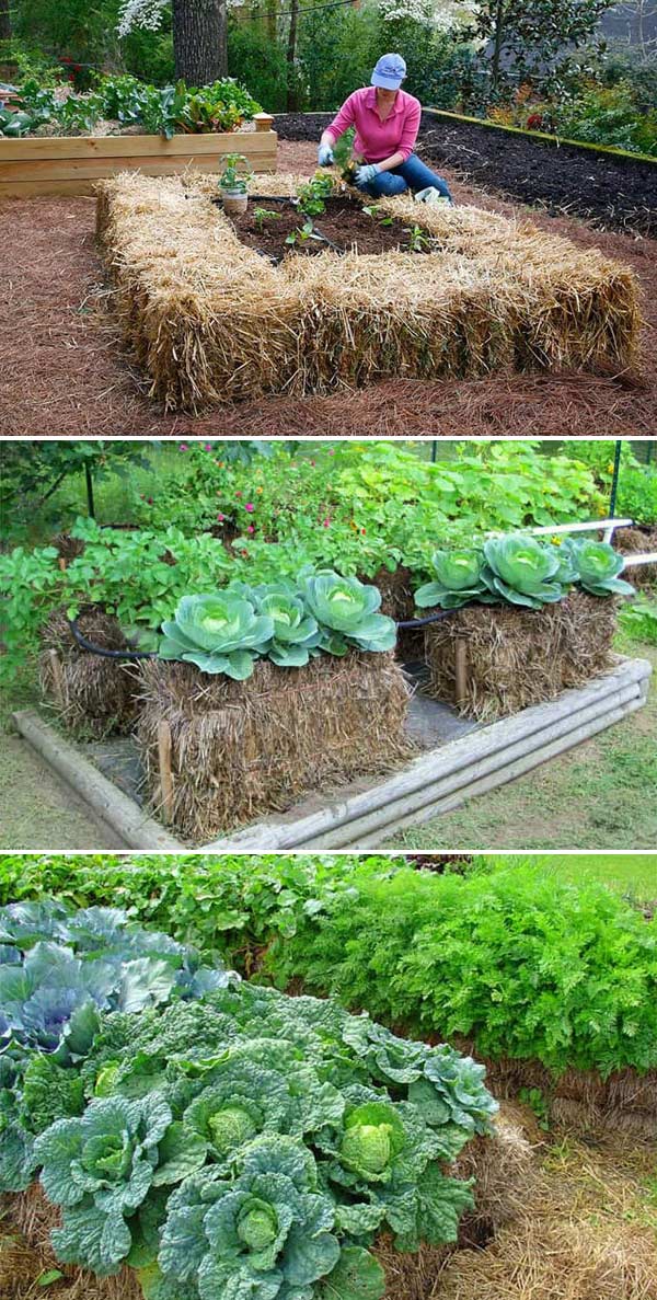 Plants can be placed directly into the bales or soil added on top.