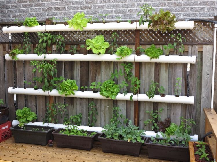 • Attach PVC pipes horizontally along walls to create pockets for leafy greens.